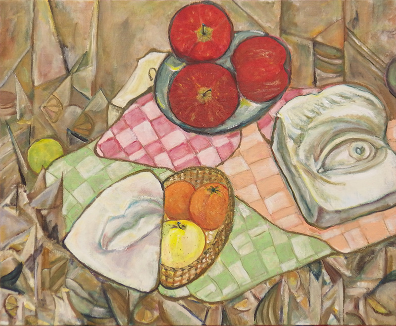 今回は、昨年末に行ったキュビズム実験の流れで、セザンヌ風(!?)のモチーフを組み、皆さんそれぞれの解釈で描いていただきました。